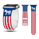 Each strap features unique American-themed designs, including the iconic stars and stripes, political symbols of the Democratic donkey and Republican elephant, and images related to President Trump, allowing you to choose a band that represents your values.